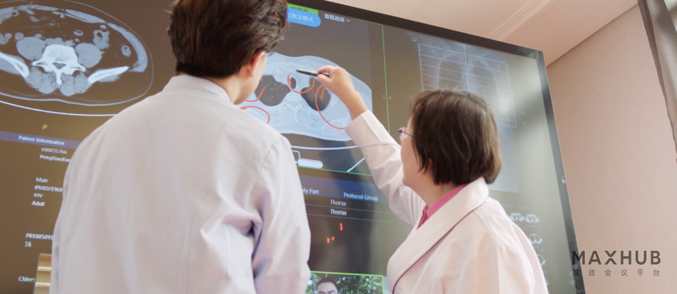 通過引進MAXHUB數據可視化及交互平臺,醫(yī)生們可以圖文并茂向患者呈現病理模型,并通過大數據系統(tǒng)快速調用醫(yī)療數據,讓診斷結果一目了然,幫助患者更好理解自身病情,進行深入的治療。