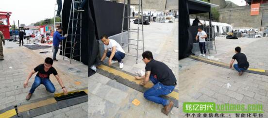 由于此次活動是在北京長城上舉辦的,每個工作大棚都是現(xiàn)場臨時搭建,所以為了保障大棚之間連接的線路不被施工車輛損壞,同時也避免路過的跑者或工作人員被絆倒,就在所有裸露在外的線路上蓋了過橋板。