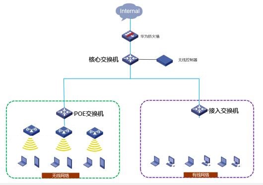 采用簡(jiǎn)單星型組網(wǎng),控制器管理全網(wǎng)有線無(wú)線設(shè)備: