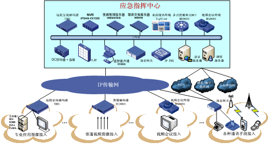 包括各類前端信息采集與通訊接入,物理上市分散在各委辦局。普通視頻圖像采集通過普通編碼器接入現有圖像資源,專業(yè)應用圖像采集通過遠程呈現(TD Tele-Display)編碼器接入各類專業(yè)業(yè)務系統(tǒng)的顯示結果,通訊接入融合PSTN電話、IP電話、WiFi話機、手機、高清視頻會議等